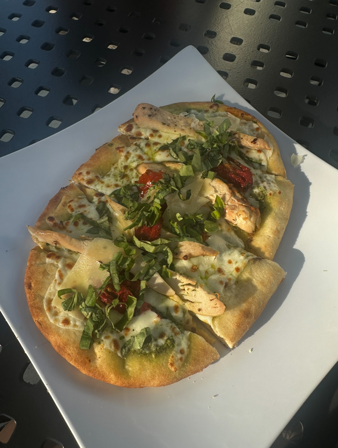 By now, we were very hungry, so we decided to eat and drink by the memorizing coy pond to relax. Their versatile and healthy menu changes often so its fun to try something new every time you go. My sister went for the fish tacos and she said they were delicious and my mom got an ahi burger with ahi tuna, wasabi, sesame soy aioli, and cucumber Asian slaw on a toasted brioche bun which she wasn’t really sure about trying but ended up loving it. I purchased the margherite flatbread pizza which has cherry tomatoes, baby spinach, mozzarella cheese, San Marzano marinara and fresh basil. It was the perfect size for me and I really enjoyed It.