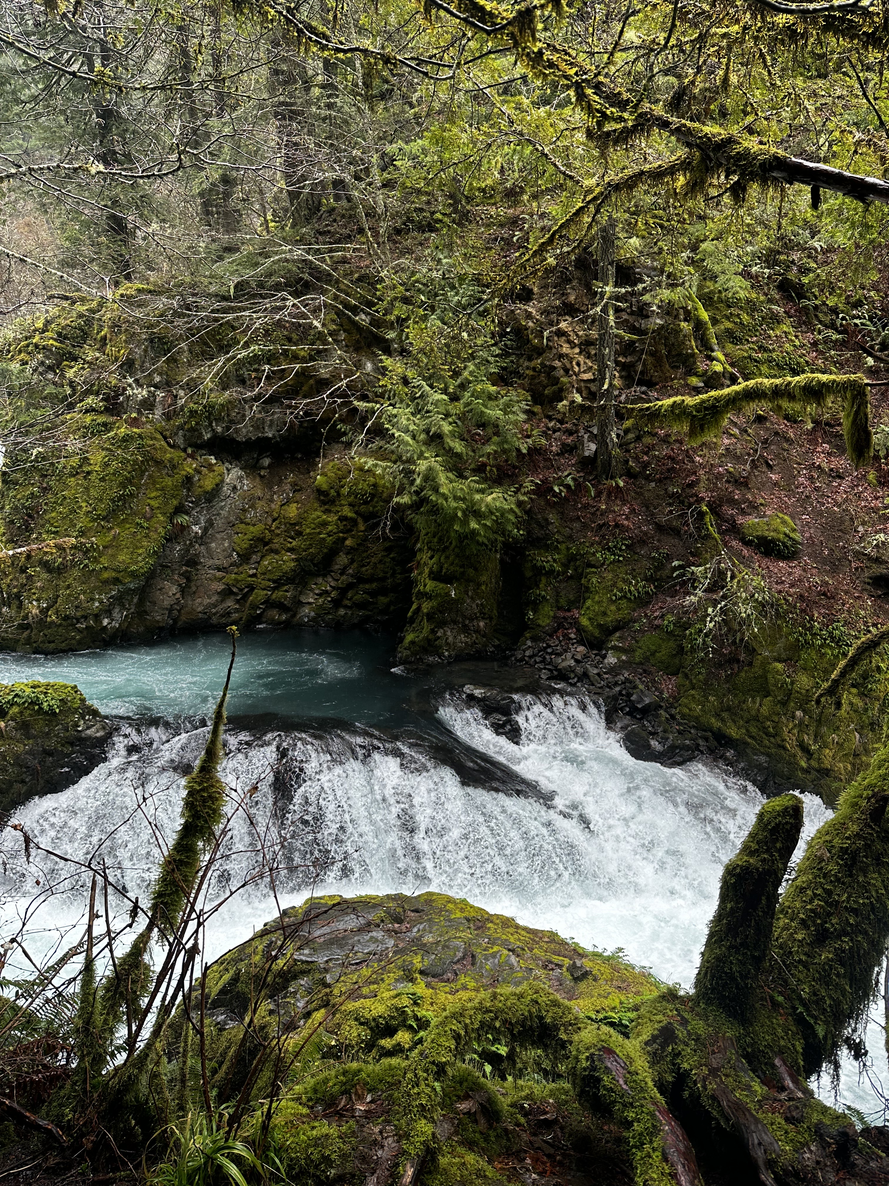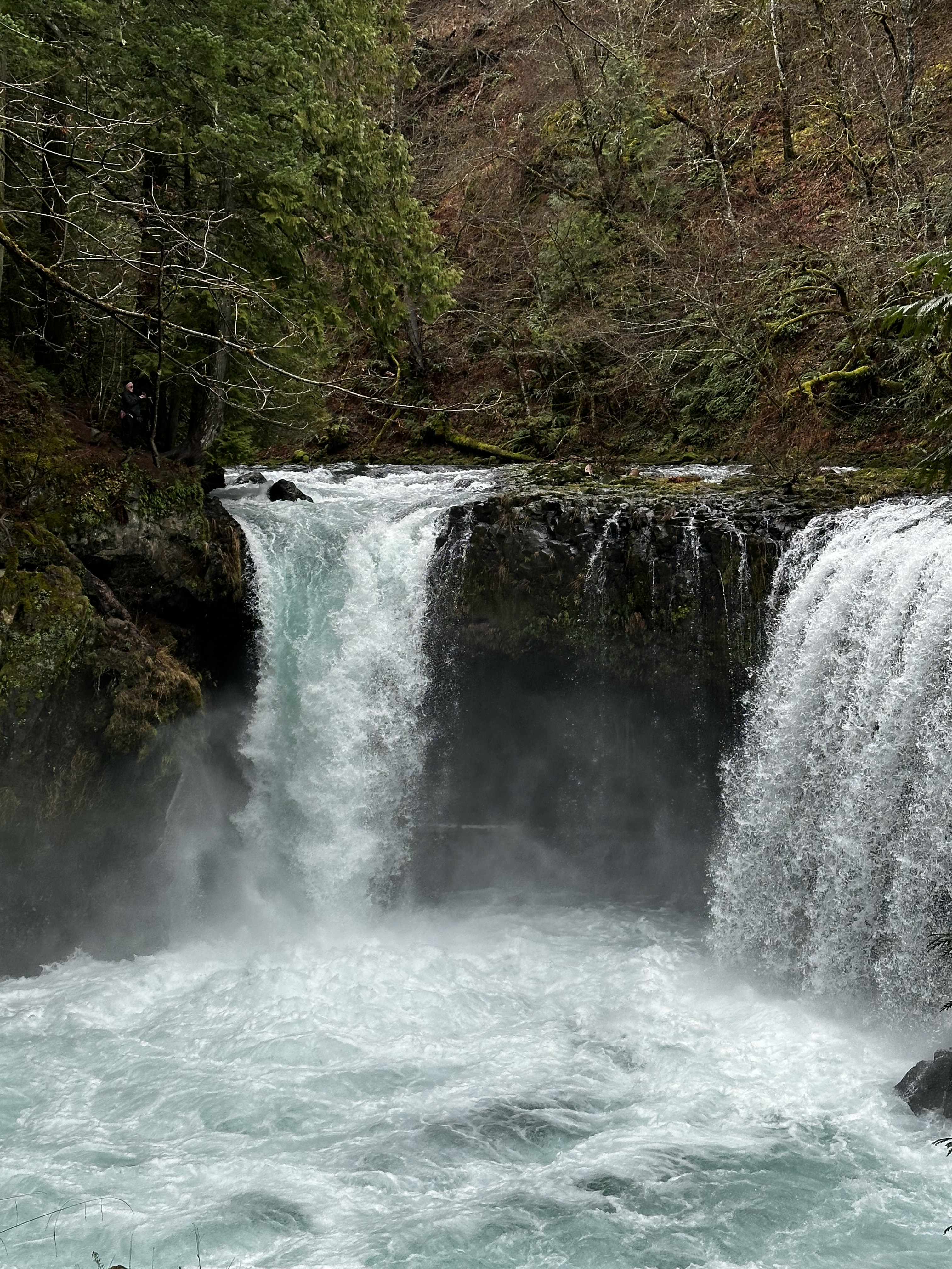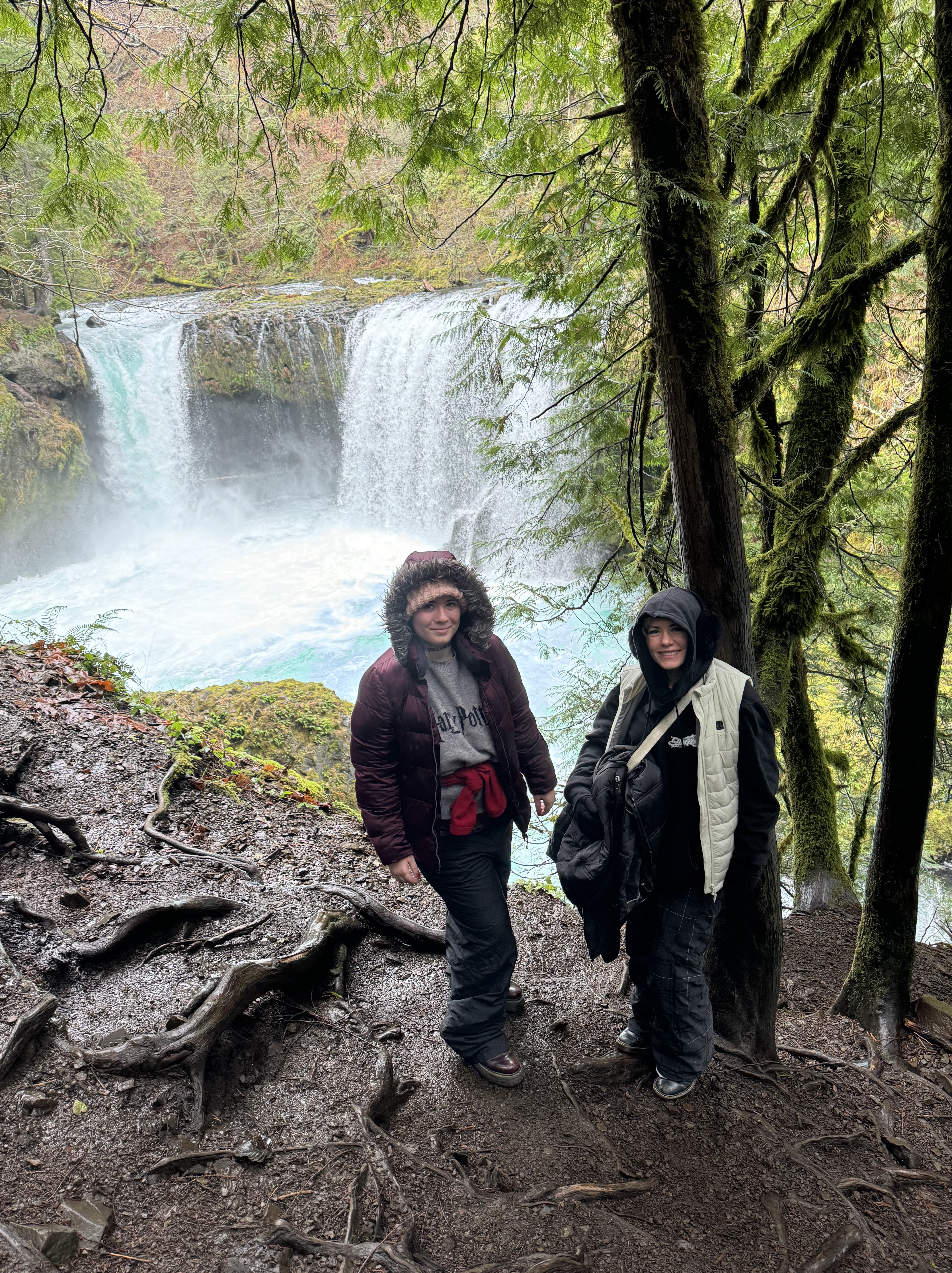 Our aunt took us to her favorite waterfall, and now it’s mine too. Spirit Falls is hidden deep in the Washington forest—mossy rocks, roaring icy water, and this surreal turquoise tone that felt like a dream. We hiked in the rain and watched kayakers literally launch themselves off the waterfall. It even started snowing on our hike back! By the end of it, we were practically climbing our way out of the forest.