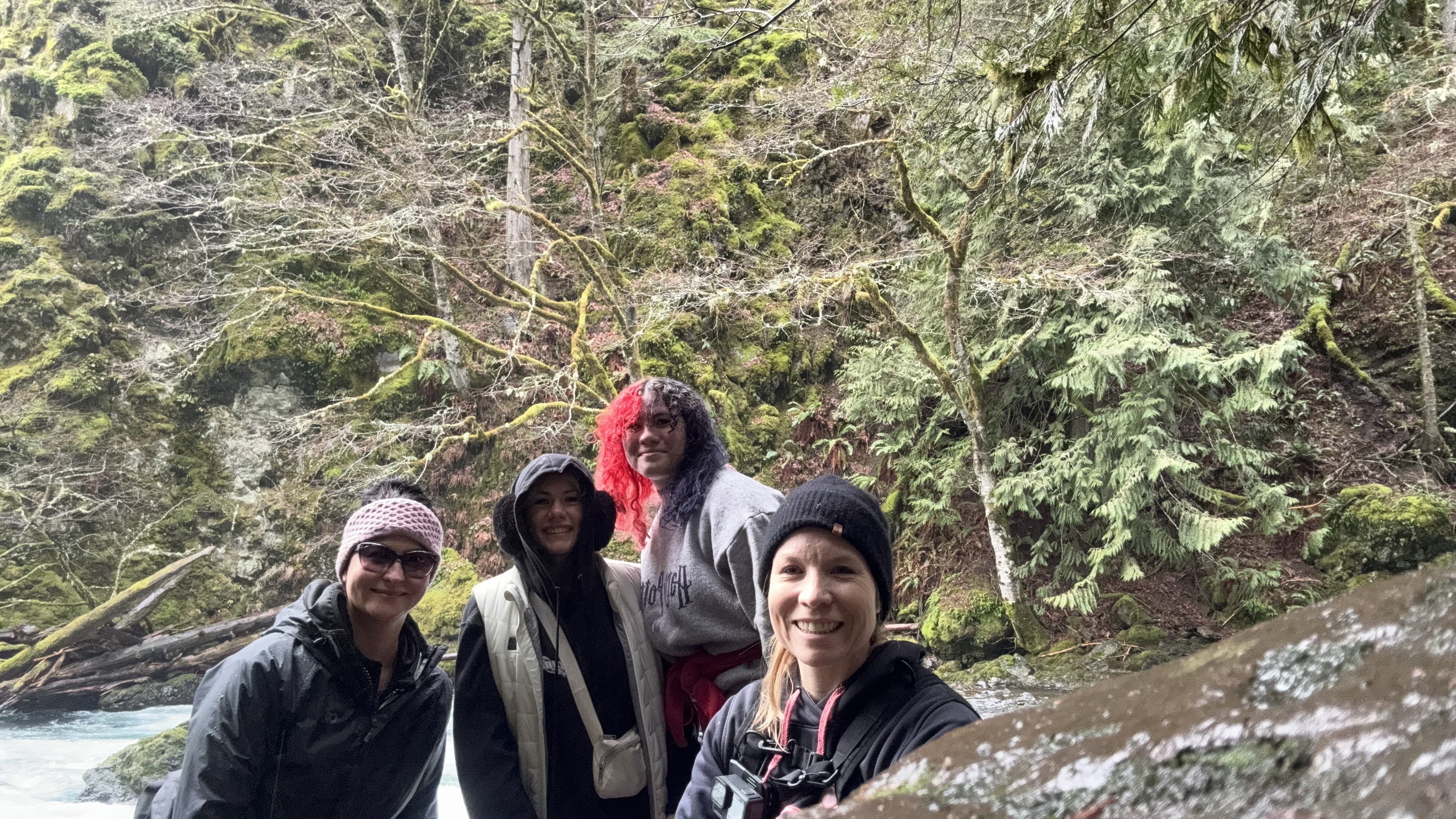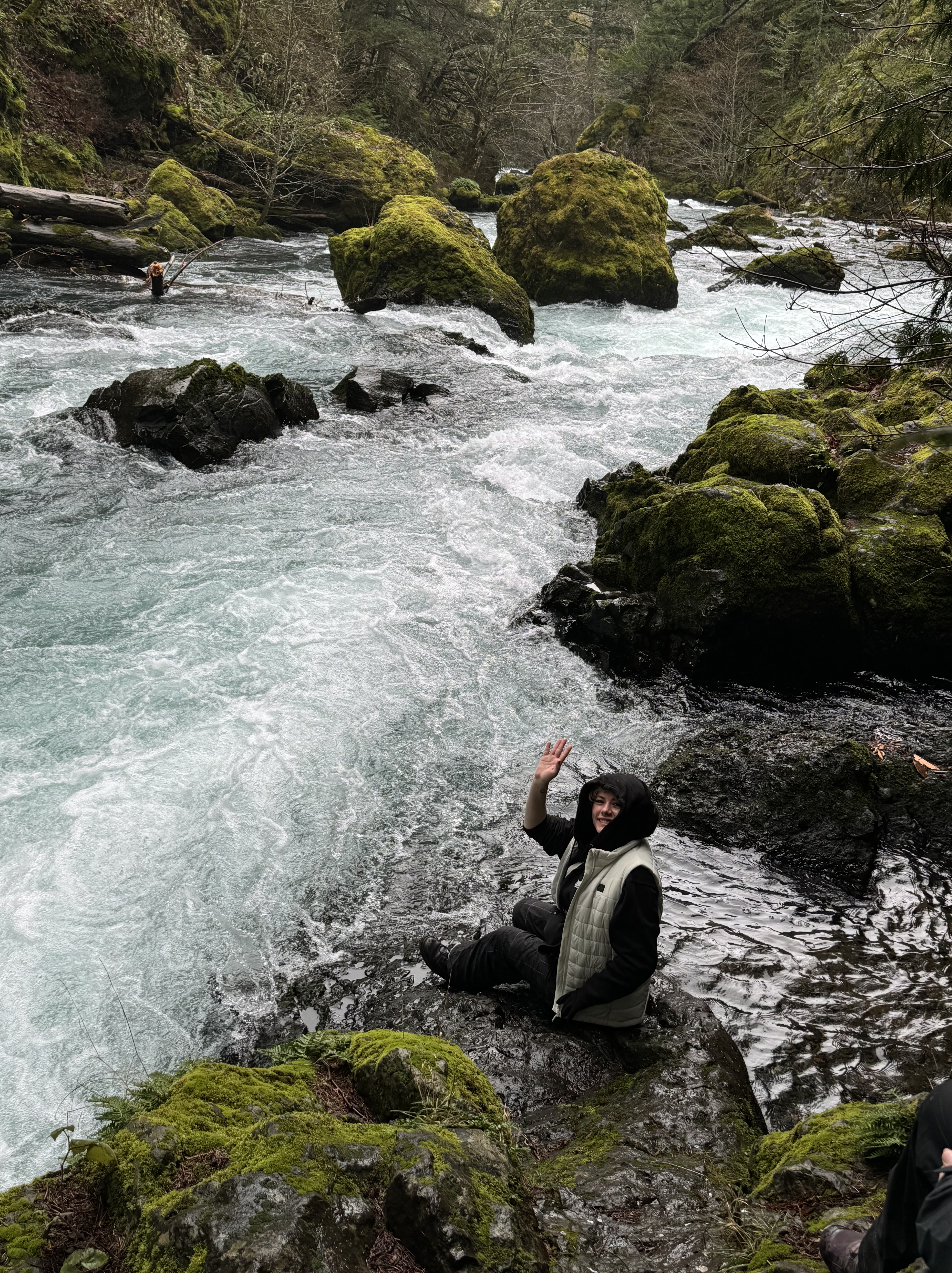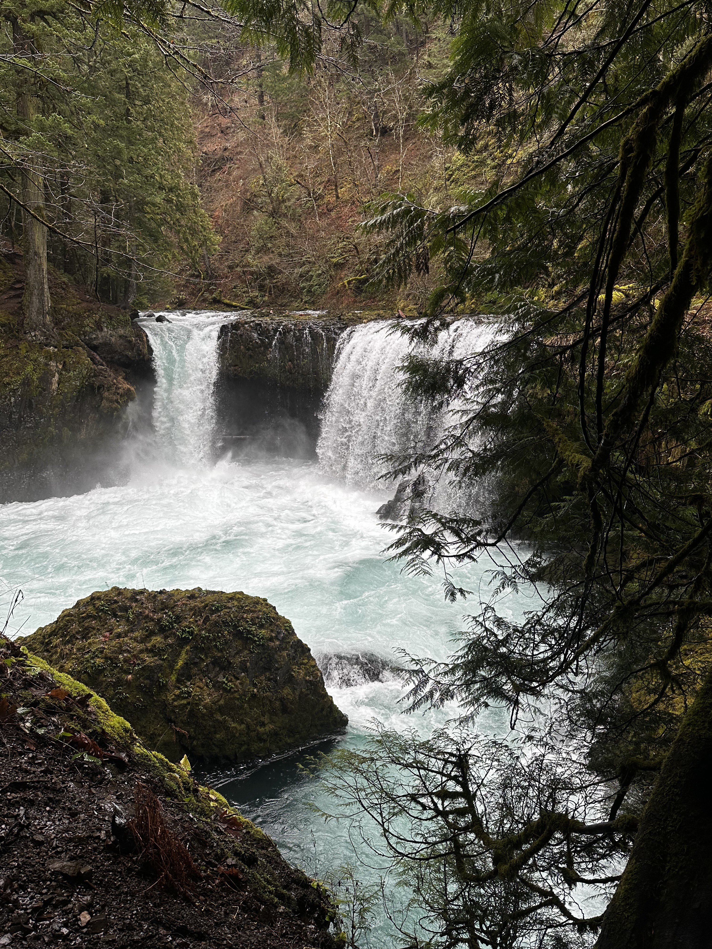 Our aunt took us to her favorite waterfall, and now it’s mine too. Spirit Falls is hidden deep in the Washington forest—mossy rocks, roaring icy water, and this surreal turquoise tone that felt like a dream. We hiked in the rain and watched kayakers literally launch themselves off the waterfall. It even started snowing on our hike back! By the end of it, we were practically climbing our way out of the forest.