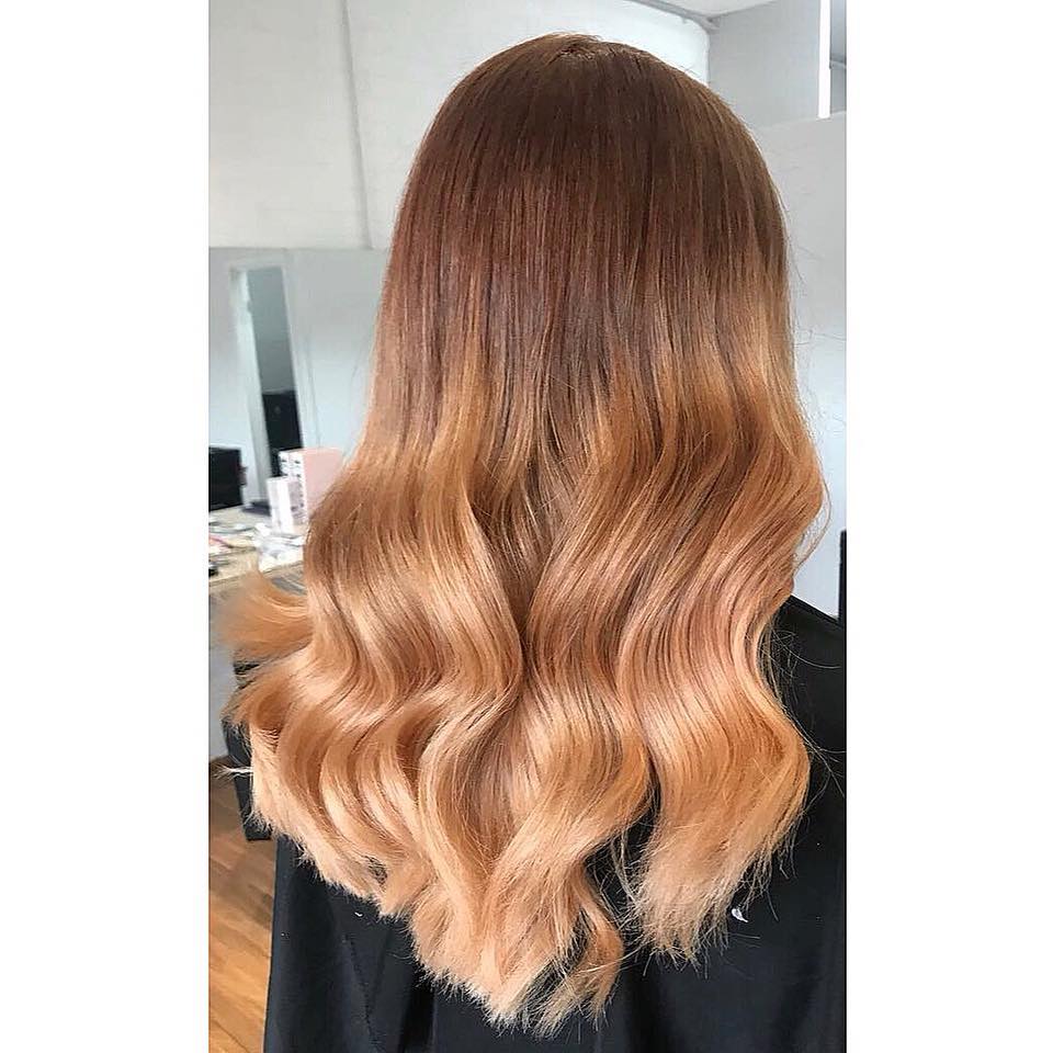 - Rooty copper dripping into peachy ends